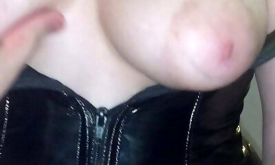 Wonderful amateur busty latex bitch and her booty bragging outdoors