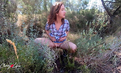 Ultra-kinky MILF got wet with excitement and pummeled herself in the park