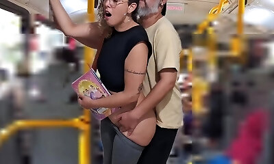 Young whore college girl gets fucked by an older man right on the bus in public