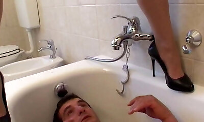 Mature Woman Gives A Spanking In The Bathroom In Dark-hued Endowed